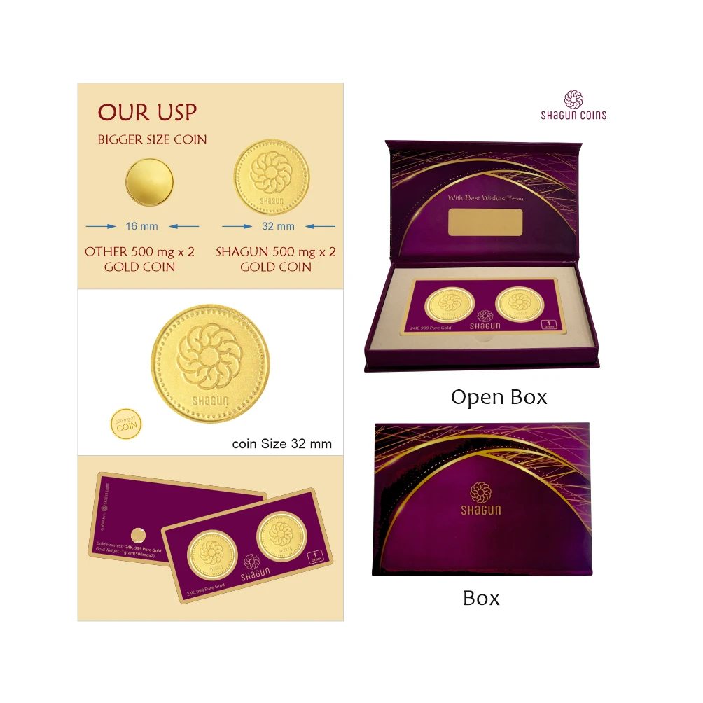 | Product Name | 1 GRAM GOLD COIN SET - SHAGUN (500 mg. X 2 COINS) |