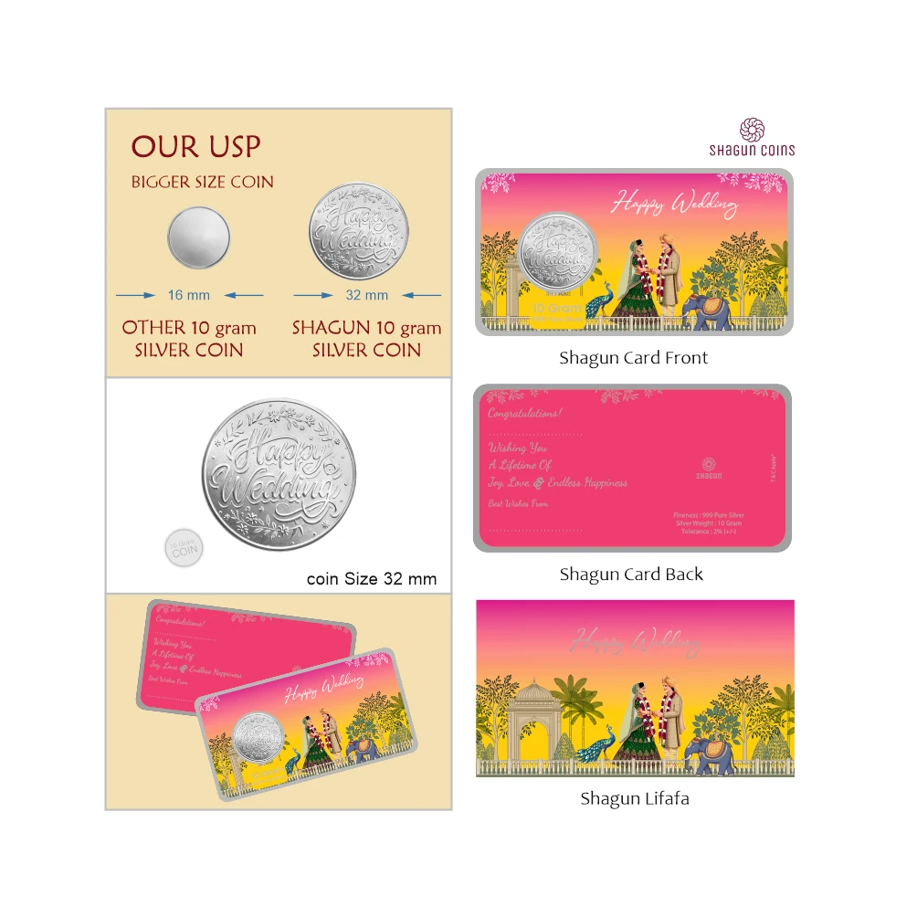 | Product Name | 10 GRAM SILVER SHAGUN LIFAFA - WEDDING YELLOW |